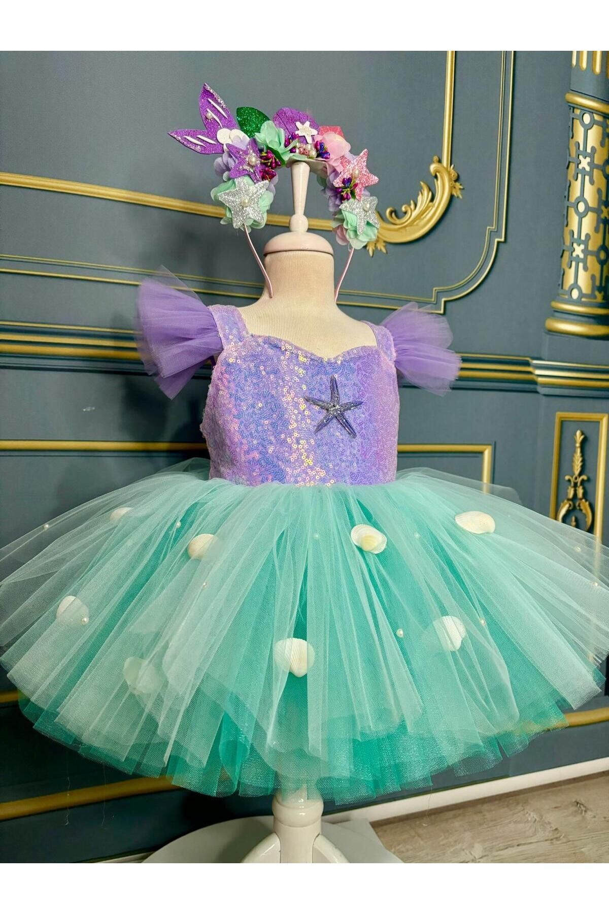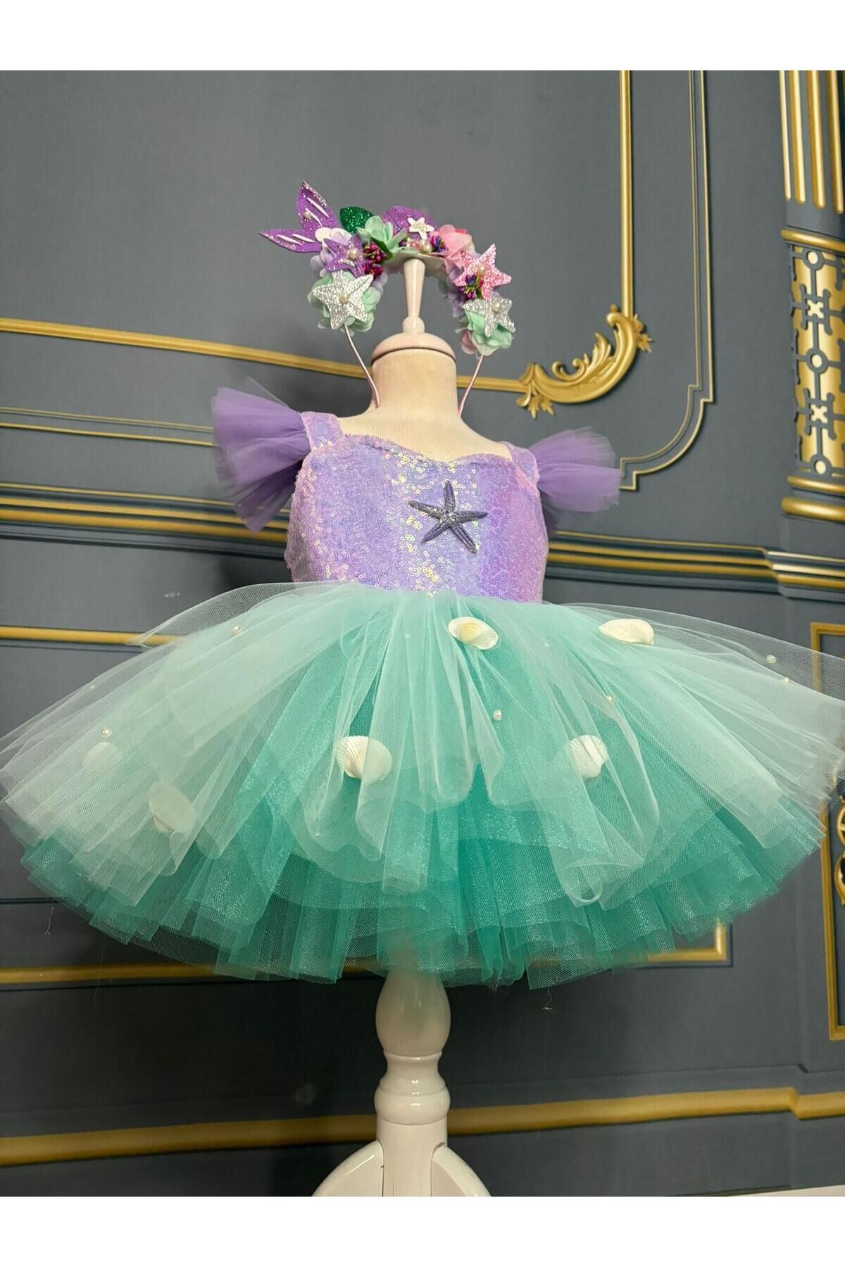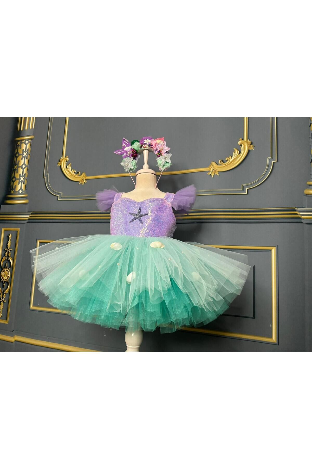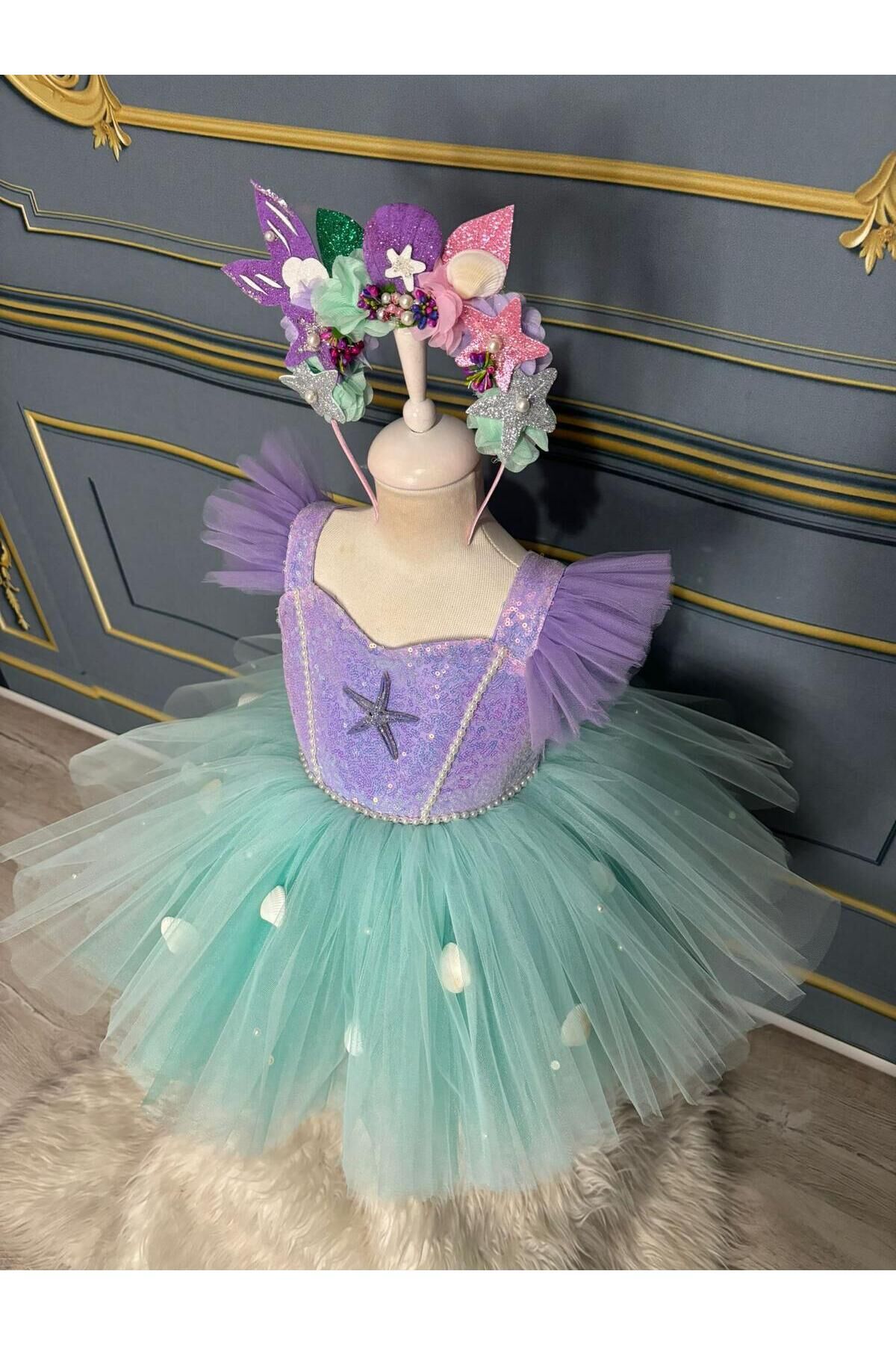 - Deniz kızı temalı bu kostüm, çocukların hayal gücünü canlandırırken şıklığı da ön planda tutar.; - 153 cm boyundaki kız çocukları için idealdir ve tüm yaş gruplarına hitap eder.; - Tül kumaştan üretilmiş olup, hafifliğiyle rahat hareket etme imkanı sunar.; - Jile kalıbıyla vücuda tam oturarak zarif bir siluet oluşturur.; - Baskısız deseni sayesinde sade ve şık bir görünüm sağlar; parıltılı detaylarıyla göz alıcıdır.; - Tekli paket içeriği ile kolayca kullanılabilir ve kutusuz olarak pratik bir şekilde saklanabilir.; - Kalın askılı tasarımıyla yaz ayları için idealdir; ince yapısıyla serin tutar.; - İç göstermeyen özelliğiyle konforlu bir kullanım sunarken, düz deseniyle her ortama uyum sağlar.; - Kalp yaka detayı ile feminen çizgilere sahip olan bu kostüm, parti gibi özel günlerde de tercih edilebilir.; - Astarlı yapısı sayesinde ekstra koruma ve rahatlık sağlar.; - Payet materyali ile ışıltılı bir görünüm kazandırırken, saten dokusuyla yumuşak bir his verir.; - Kemer veya kuşak bulunmadığından sade ve modern bir tarza sahiptir.; - Sürdürülebilirlik detayına dikkat edilmemiştir ancak dayanıklılığı ile uzun süreli kullanım vaad eder.; -Taç elbiseye dahildir 1 yaş: göğüs:52 cm bel: 50cm boy:88-92 2 yaş: göğüs:54 cm bel: 51 cm boy:92-98 3 yaş: göğüs:56 cm bel:52 cm boy:98-104 4 yaş: göğüs:58 cm bel:54 cm boy:104-110 5 yaş: göğüs:60 cm bel:56 cm boy:110-116 6 yaş: göğüs:62 cm bel:57 cm boy:116-122 7 yaş: göğüs:64 cm bel:58 cm boy:122-128 8 yaş: göğüs:66 cm bel:59 cm boy:128-134 9 yaş: göğüs:68 cm bel:62 cm boy:134-140 10 yaş: göğüs:70 cm bel:64 cm boy:140-146 11 yaş: göğüs:74 cm bel:66 cm boy:146-152 12 yaş: göğüs:78 cm bel:72 cm boy :152-155