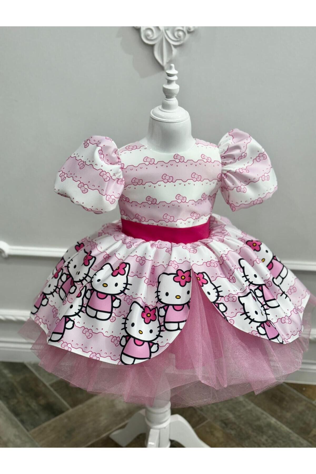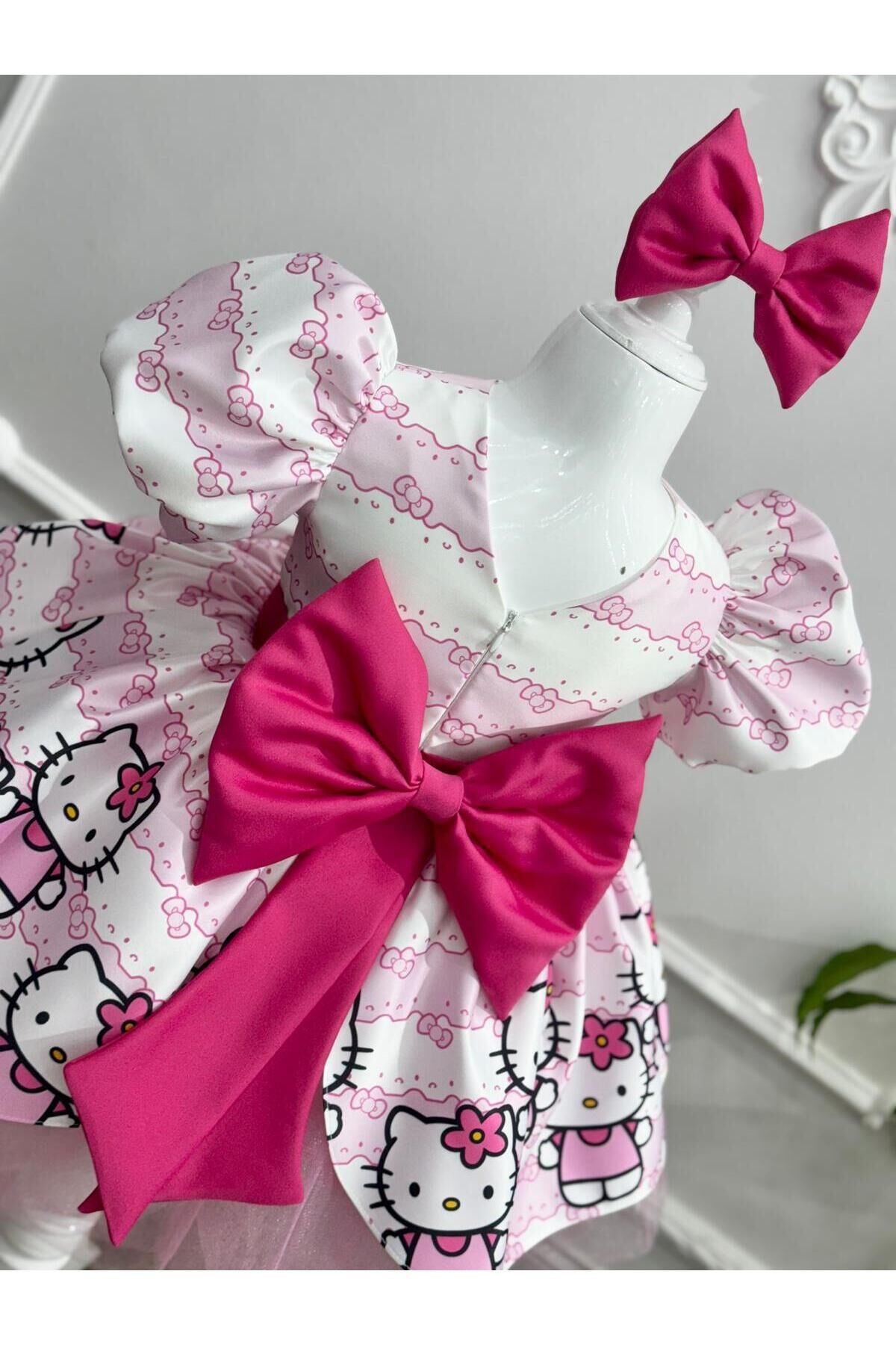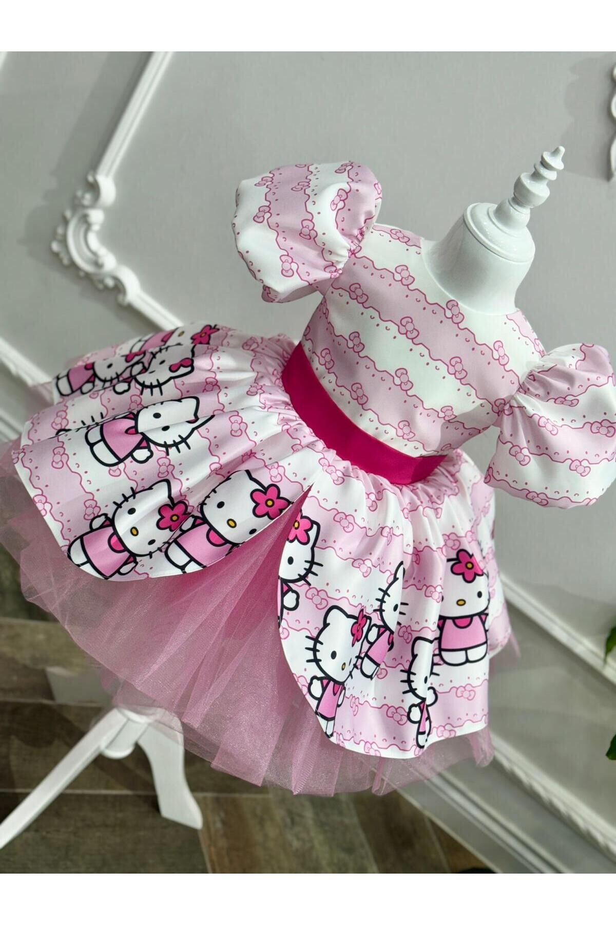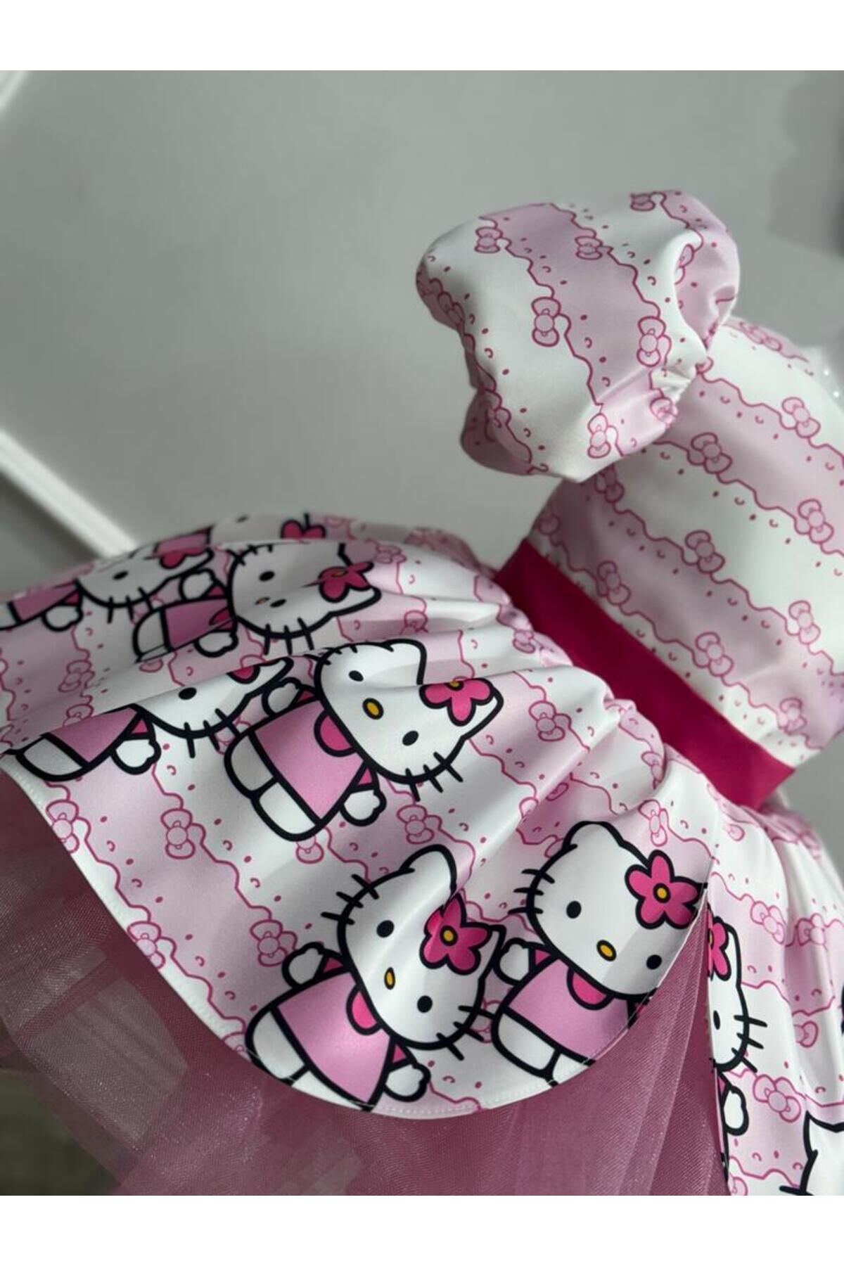 - Sevimli Hello Kity tasarımıyla çocukların gözlerini kamaştıran bu elbise, yaz aylarının enerjisini yansıtır.; - Kısa boy kesimi ile rahat hareket etme özgürlüğü sunarken, balon kol detayları şık bir görünüm sağlar.; - Saten kumaşı sayesinde yumuşak dokunuşuyla cildi tahriş etmez ve konforlu bir kullanım sunar.; - Düğmeli kapama şekli pratik giyip çıkarma imkanı tanırken, bisiklet yakası modern bir stil oluşturur.; - Astarlı yapısı ile iç göstermeyen bu elbise, dışarıda veya evde rahatlıkla tercih edilebilir.; - Balon kol tasarımı hem trend bir görünüm kazandırır hem de hareket serbestliği sağlar.; - Dijital baskı teknolojisi kullanılarak üretilen canlı ve net desenler, Hello Kity'nin sevimliliğini her an yanınızda taşımanızı sağlar.; - Kuşak detayı bel bölgesini vurgulayarak feminen bir siluet çizerken, kısa kol boyu mevsim koşullarına uygun konfor sunar.; - Cepsiz tasarım basitlikten ödün vermeden şıklığı ön plana çıkarır; böylece küçük prenseslerin tarzını tamamlar.; - 9 yaş bedeniyle ideal uyum sağlayan bu elbise, parti gibi özel günlerde miniklerinizi parlatmak için mükemmel bir seçimdir.; 1 yaş: göğüs:52 cm bel: 50cm boy:88-92 2 yaş: göğüs:54 cm bel: 51 cm boy:92-98 3 yaş: göğüs:56 cm bel:52 cm boy:98-104 4 yaş: göğüs:58 cm bel:54 cm boy:104-110 5 yaş: göğüs:60 cm bel:56 cm boy:110-116 6 yaş: göğüs:62 cm bel:57 cm boy:116-122 7 yaş: göğüs:64 cm bel:58 cm boy:122-128 8 yaş: göğüs:66 cm bel:59 cm boy:128-134 9 yaş: göğüs:68 cm bel:62 cm boy:134-140 10 yaş: göğüs:70 cm bel:64 cm boy:140-146 11 yaş: göğüs:74 cm bel:66 cm boy:146-152 12 yaş: göğüs:78 cm bel:72 cm boy :152-155