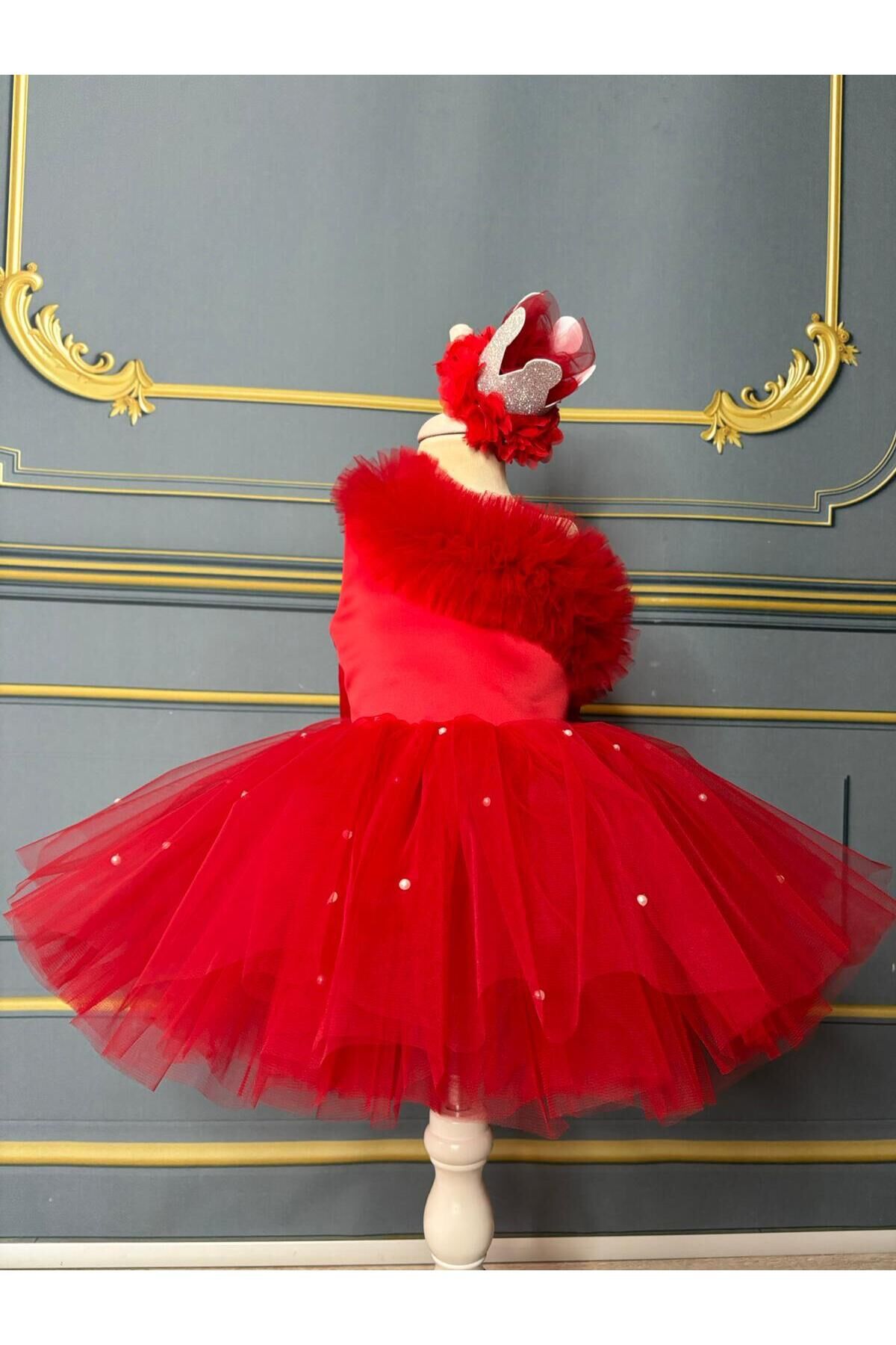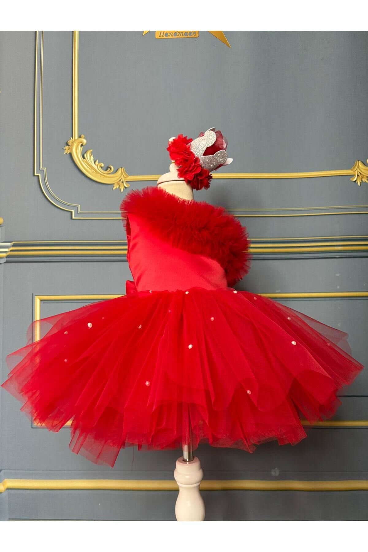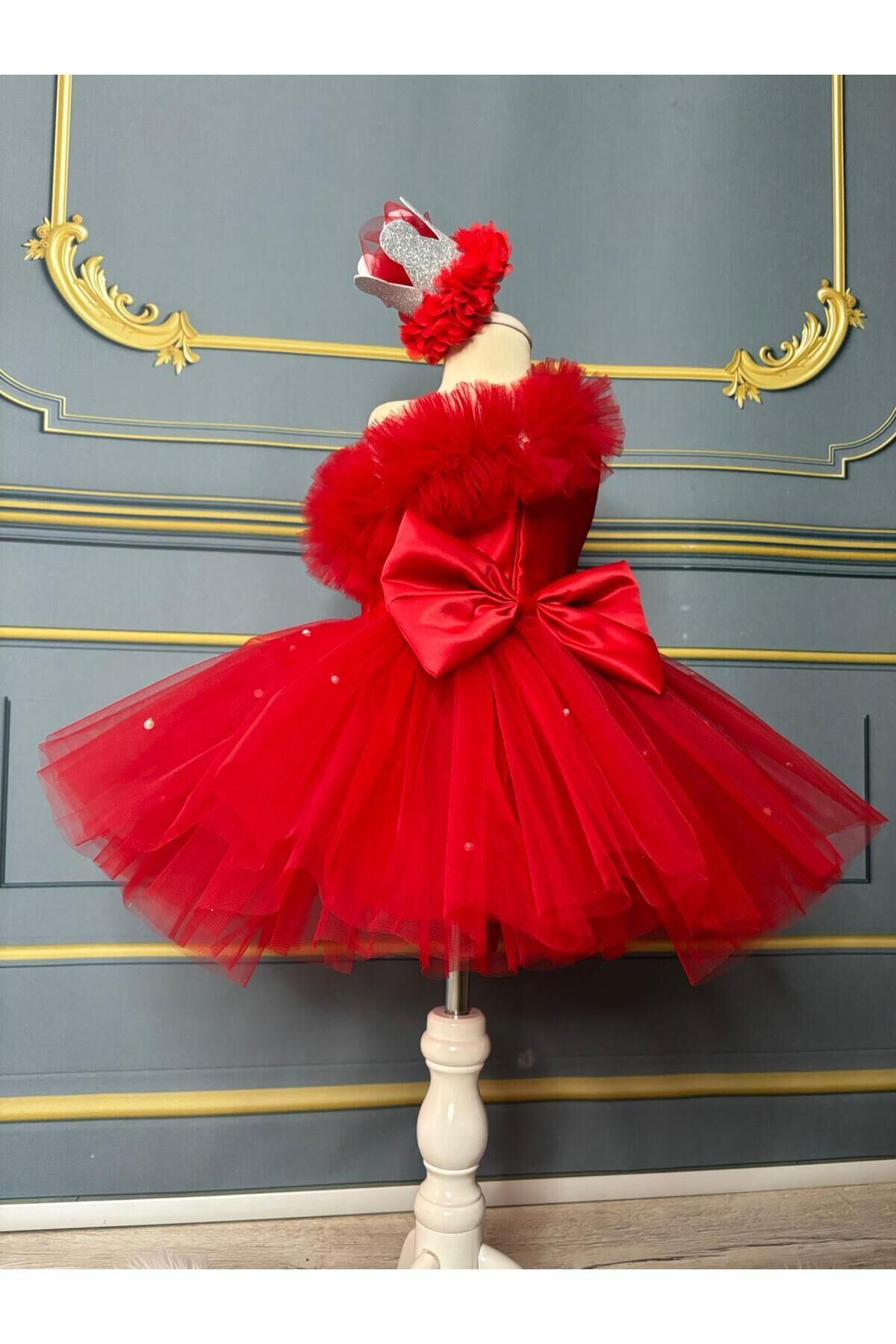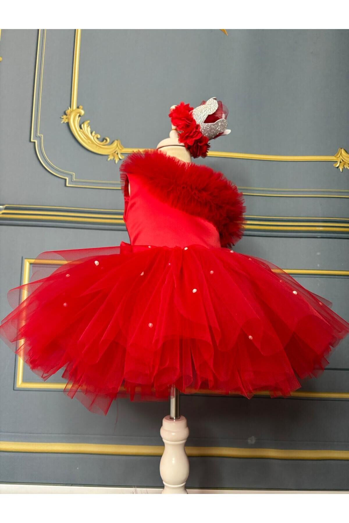 Kırmızı Kız Çocuk Tek Omuz Tütü Elbise, İnci Detaylı Kırmızı Elbise kk11kirmizi Kırmızı Kız Çocuk Tek Omuz Tütü  Elbise, İnci Detaylı Kırmızı Elbise