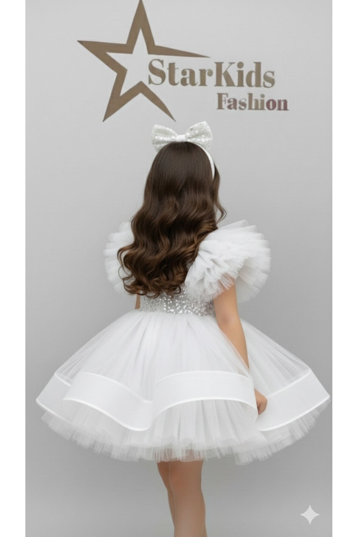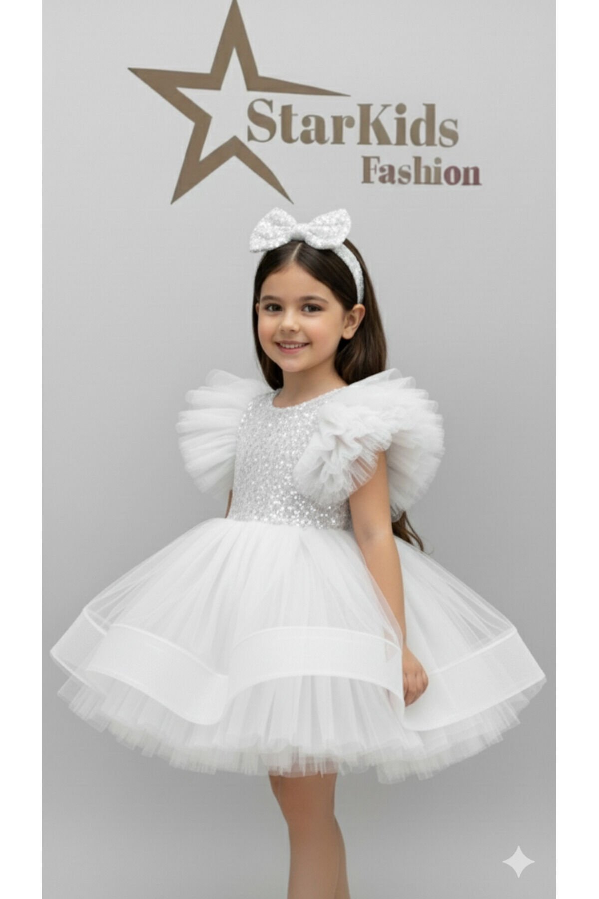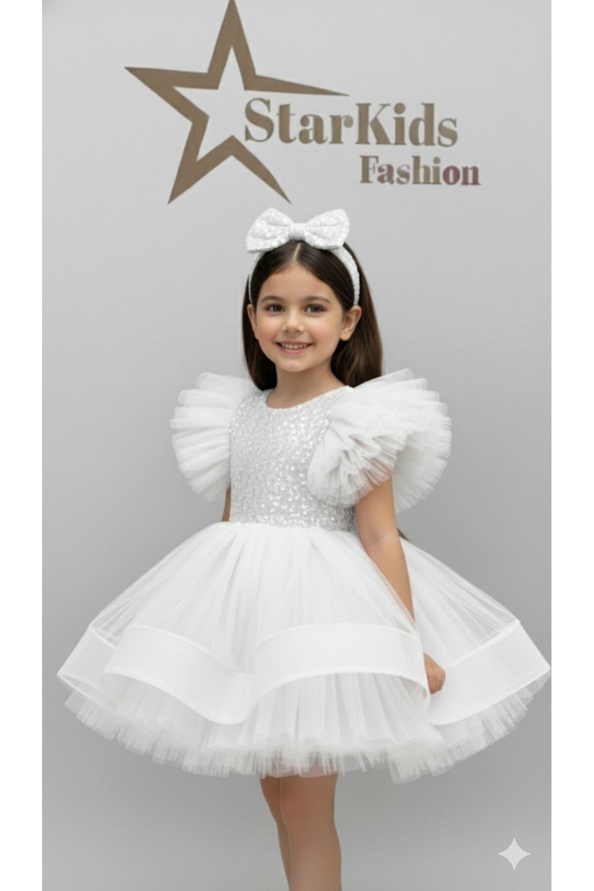 Beyazın saf ve zarif duruşunu yansıtan kısa payetli elbise, özel günlerde göz alıcı bir şıklık sunar.; Yumuşak astarı sayesinde rahat kullanım sağlar, ışıkla birlikte parlayan payet detayları ile masum ve ışıltılı bir görünüm oluşturur.; Doğum günü, özel çekim, kutlama ve parti konseptleri için ideal bir seçim.
