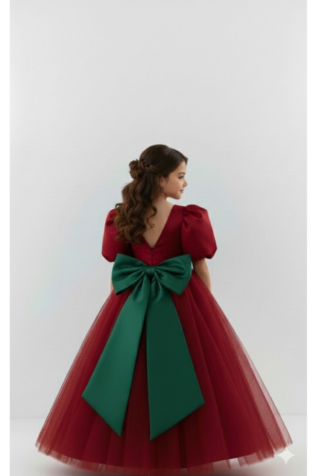 Kız Çoçuk Bordo Prenses Elbise,Kız Çoçuk Yeşil Fiyonklu Elbise,Kız Çoçuk Mezuniyet Elbisesi