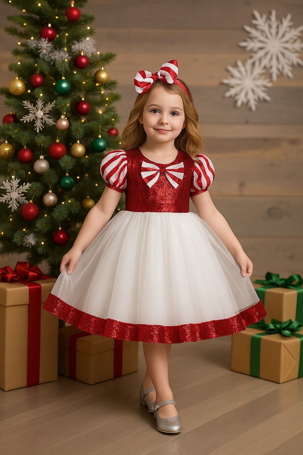 Kız çocukları için özel olarak tasarlanmış yılbaşı elbisesi