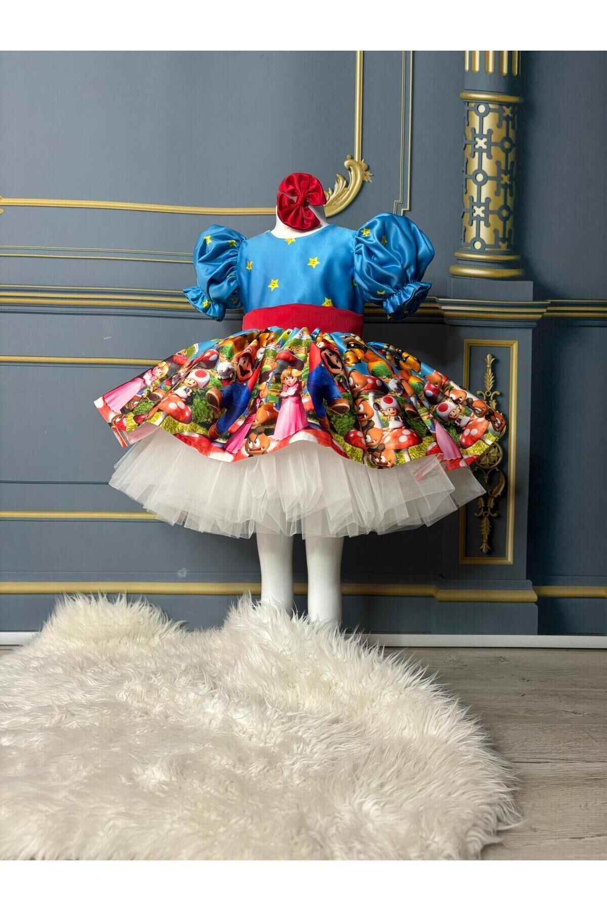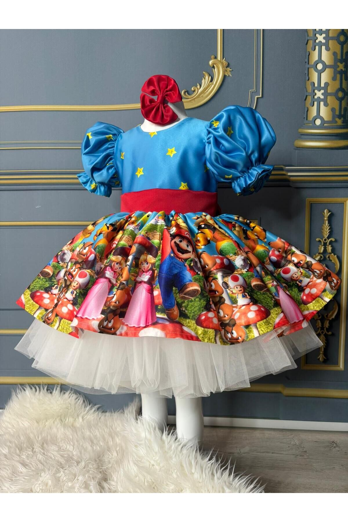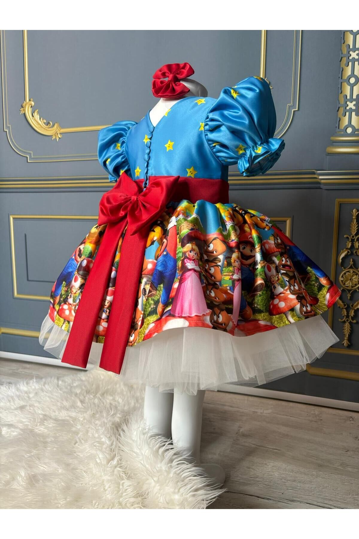 Oyun dünyasının neşesini miniklere taşıyın!Bu özel tasarım kısa Süper Mario elbise, çocukların favori oyun karakteri Mario’yu stiline taşımasını sağlar ve eğlenceli oyun saatlerine renk katar.