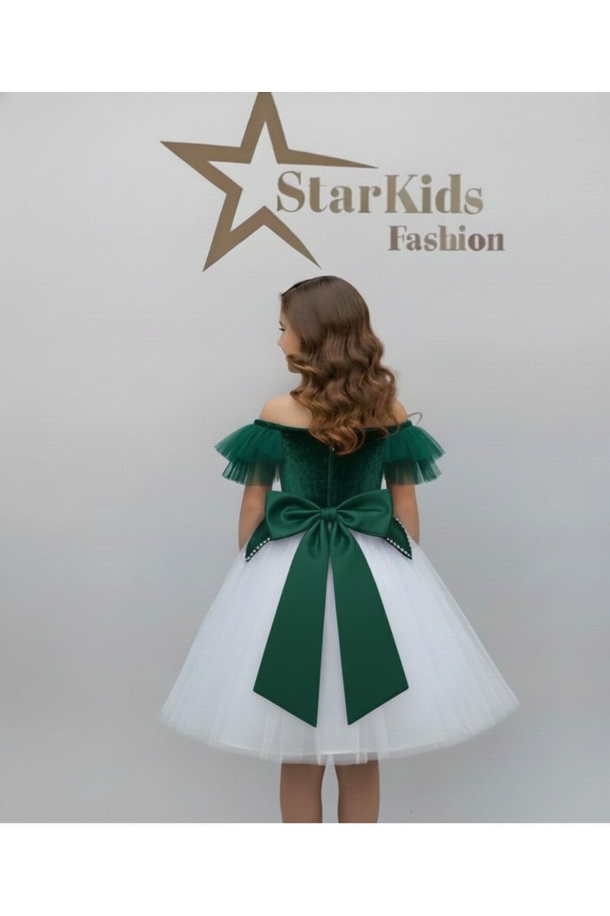 Kız Çocuk Kısa Yeşil Prenses Elbise, Kız Çoçuk Parti Elbisesi yesilbeyazyesil Kız Çocuk Kısa Yeşil Prenses Elbise, Kız Çoçuk Parti Elbisesi