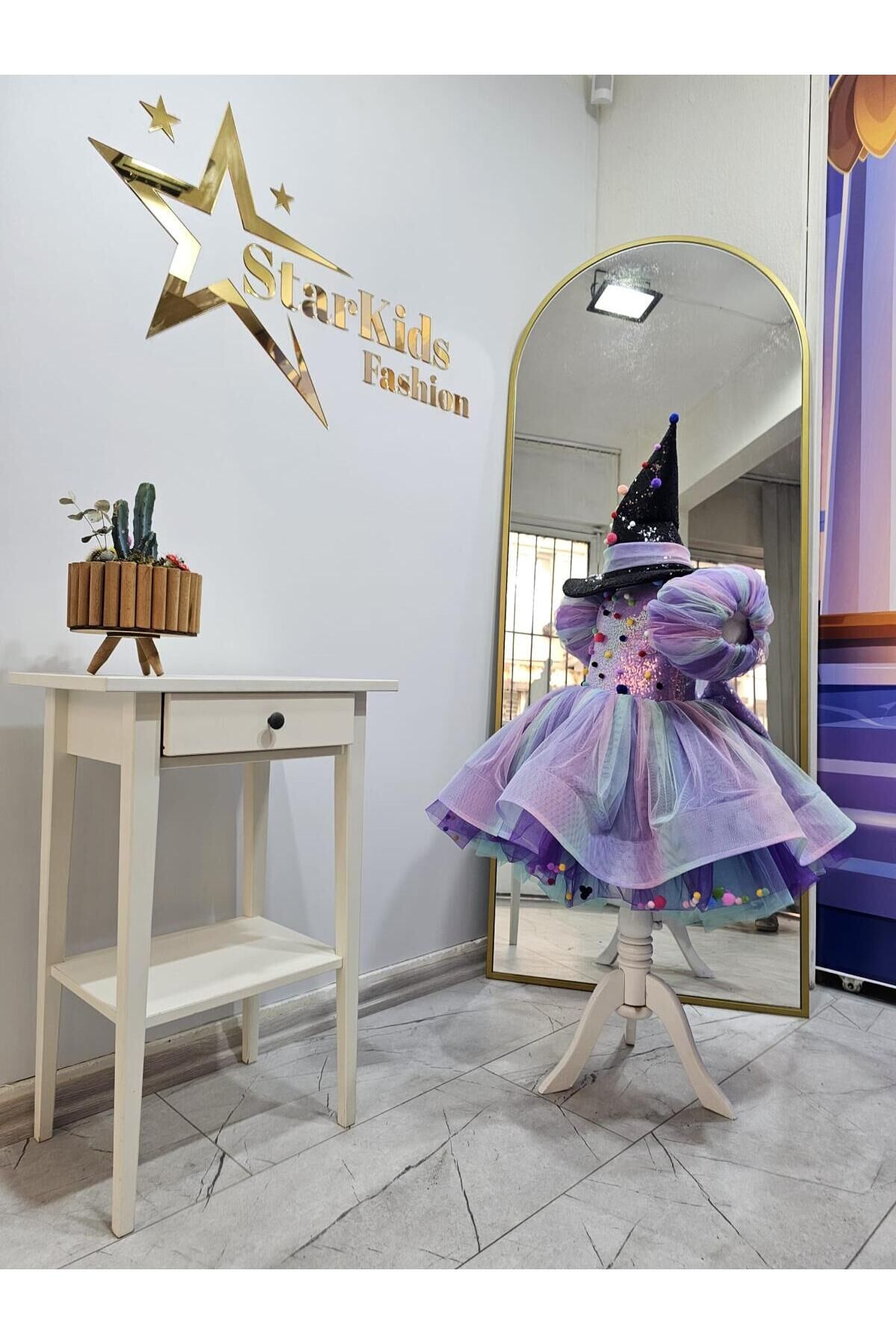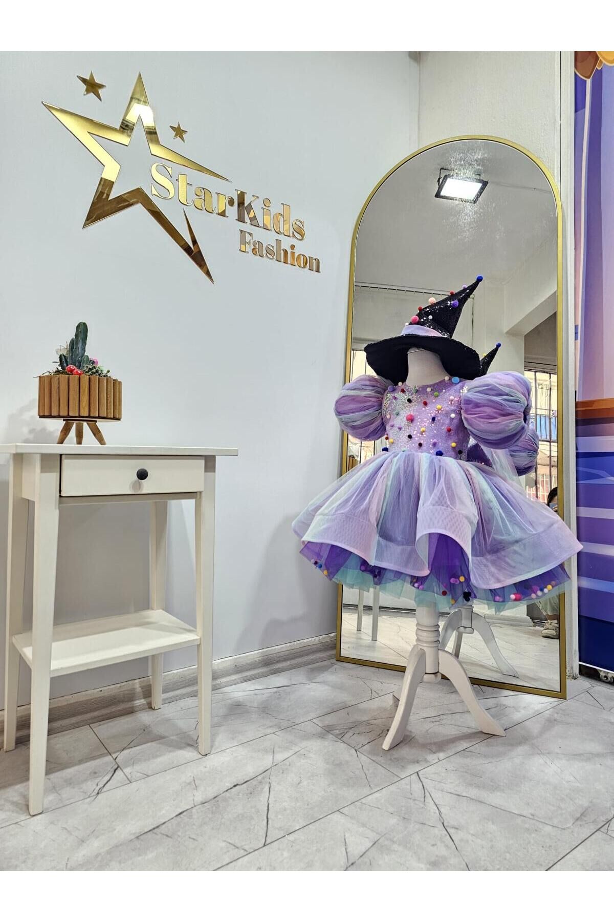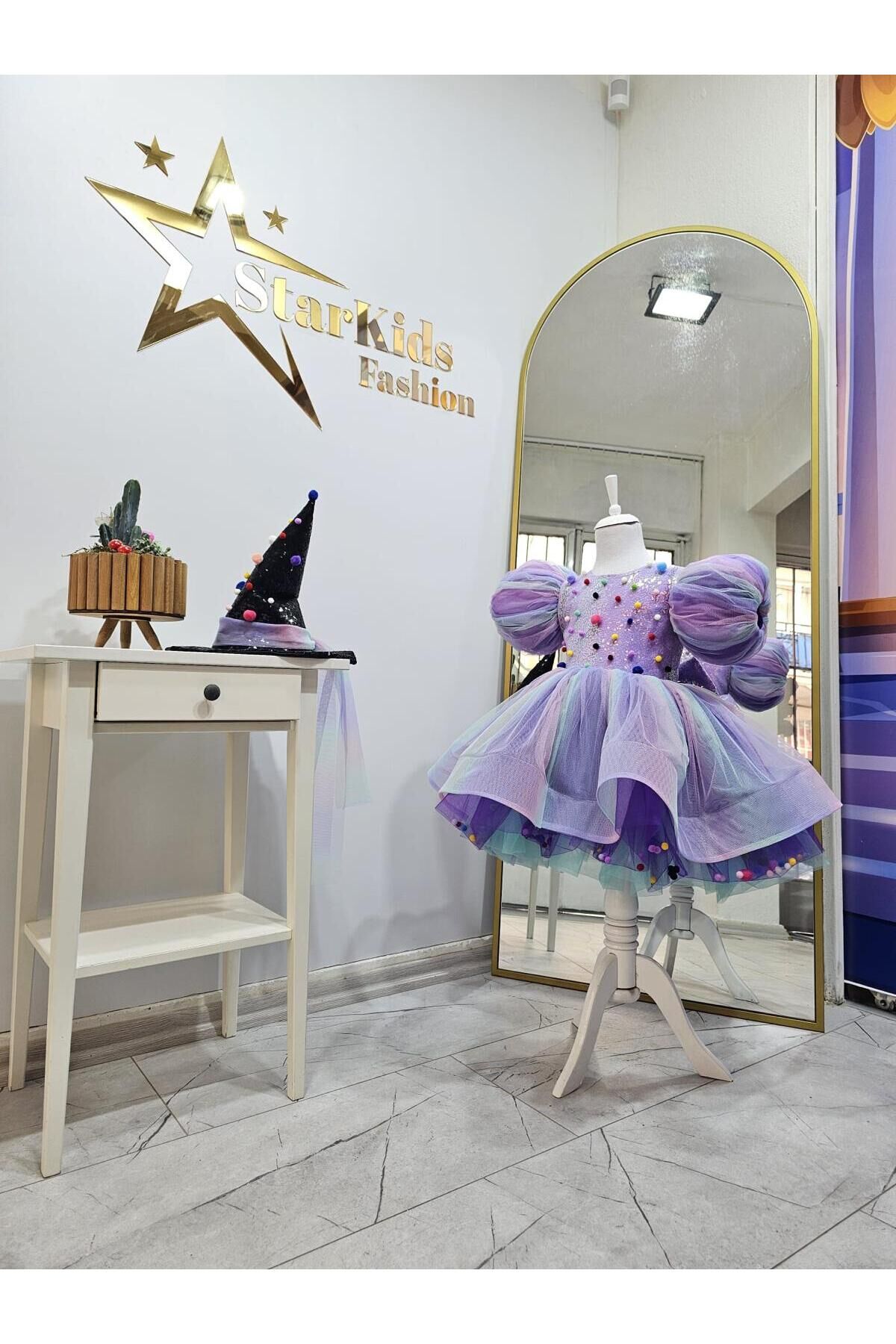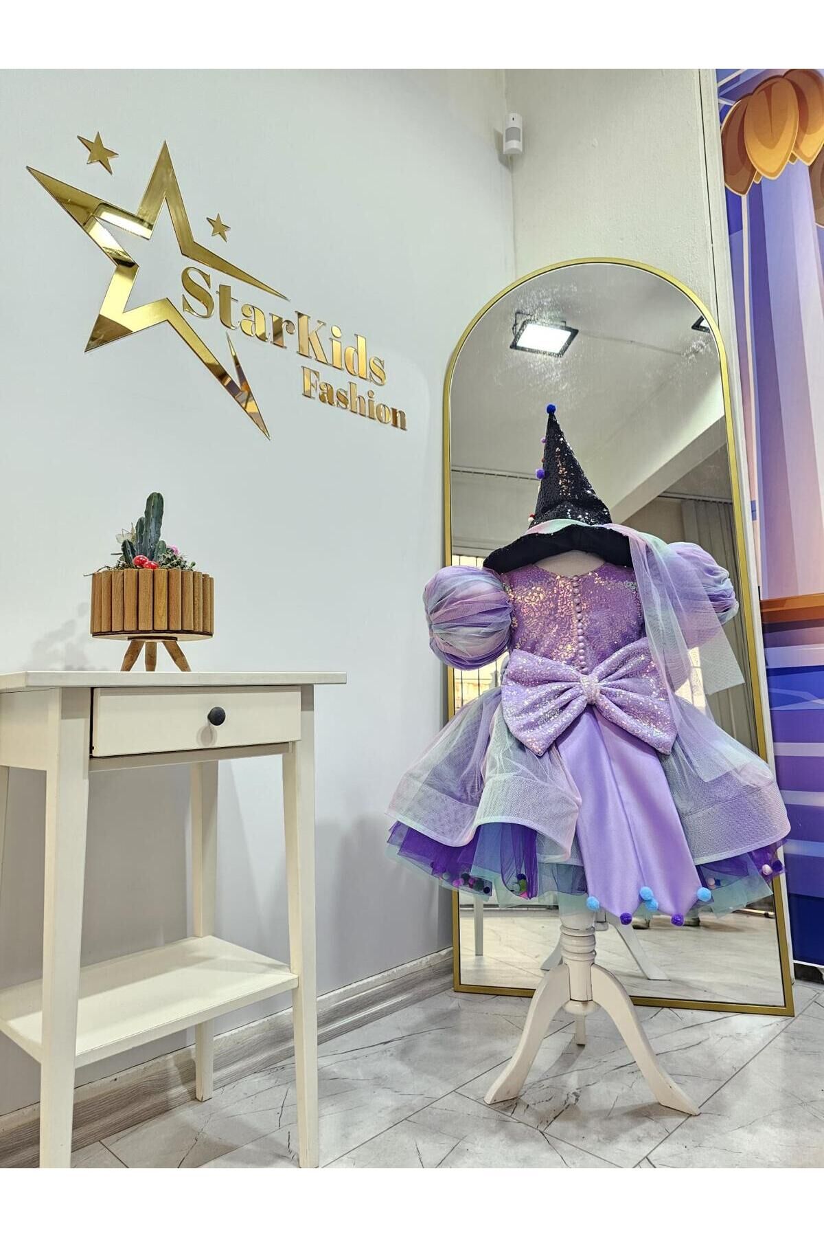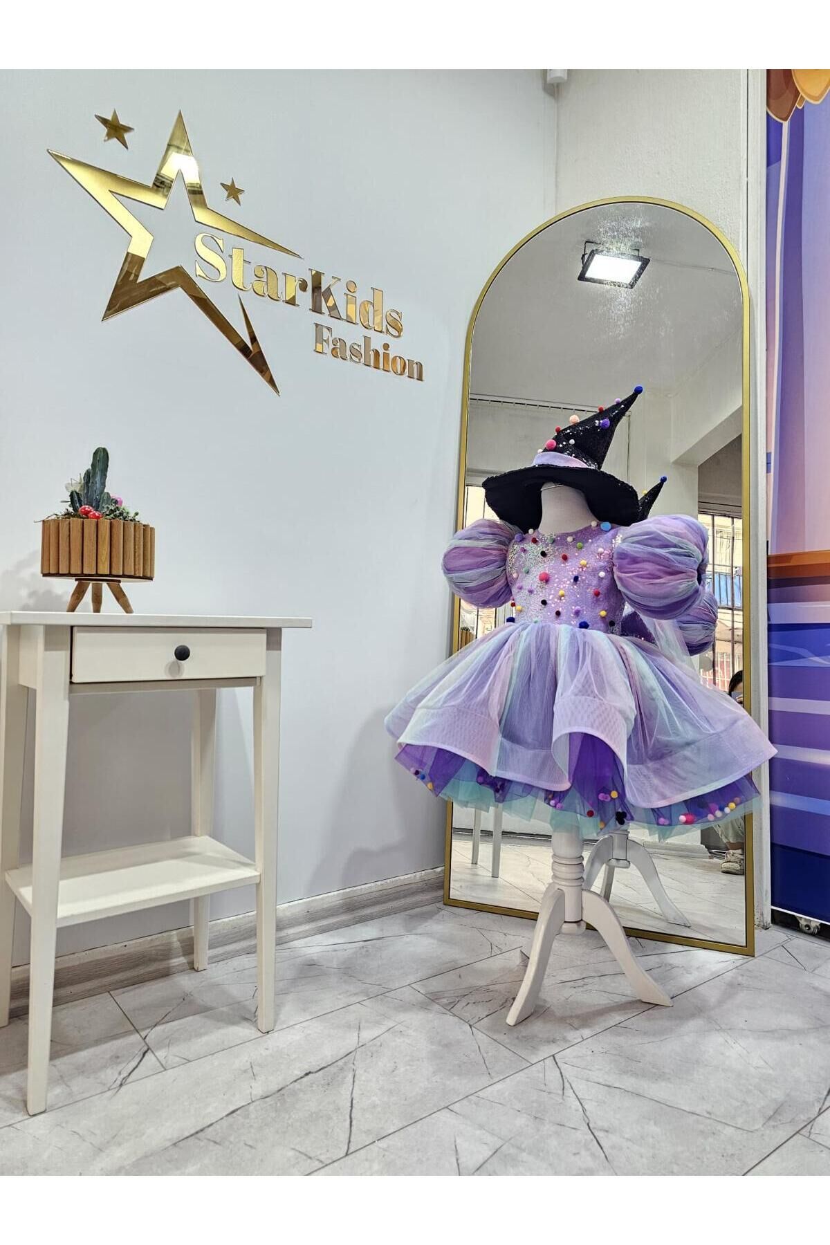 Kız Çocuk Lila Gökkuşağı Cadı Kostümü, Mor Cadı Elbisesi ve Şapkası Set morcadi1mor Kız Çocuk Lila Gökkuşağı Cadı Kostümü, Mor Cadı Elbisesi ve Şapkası Set