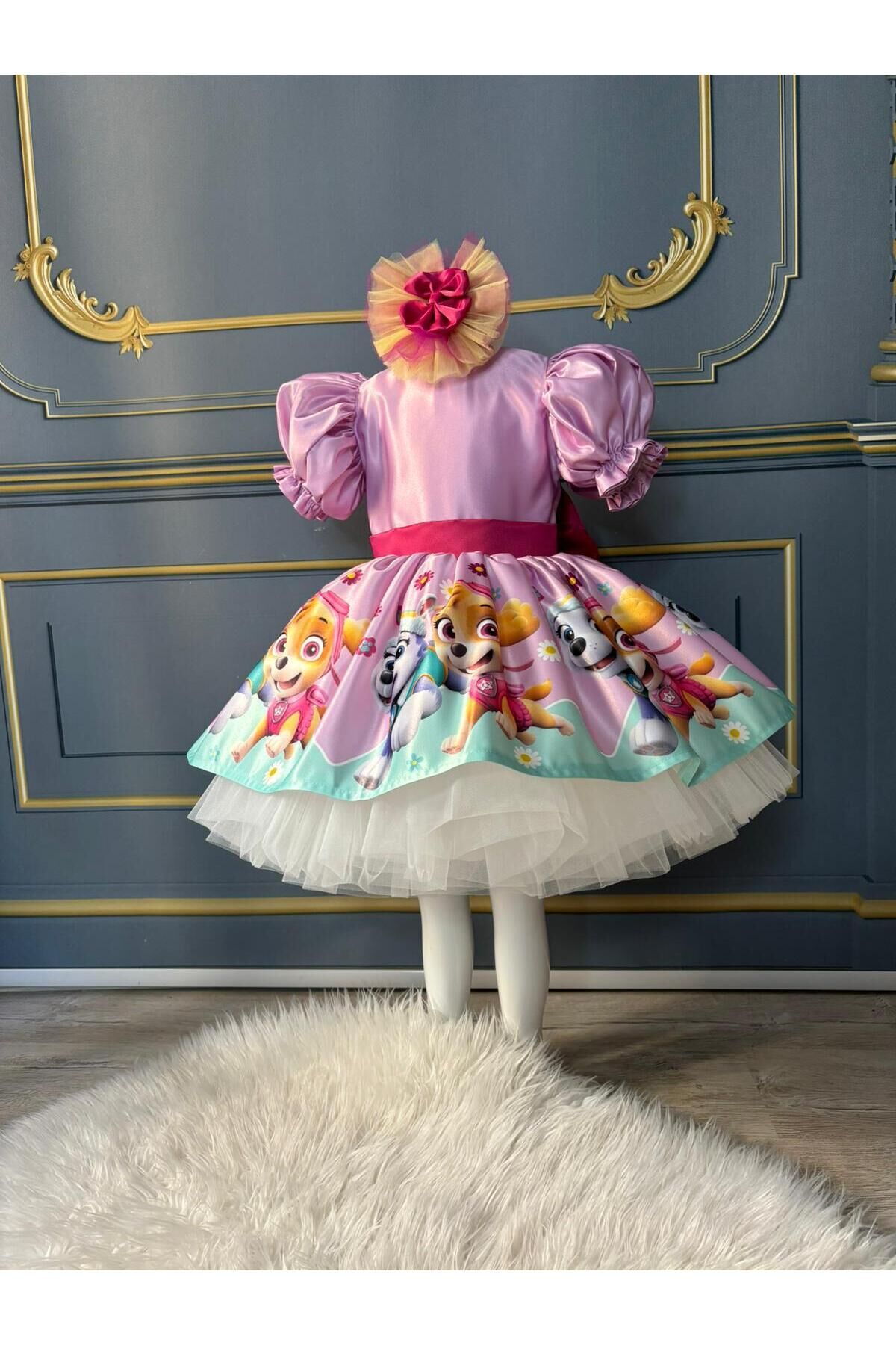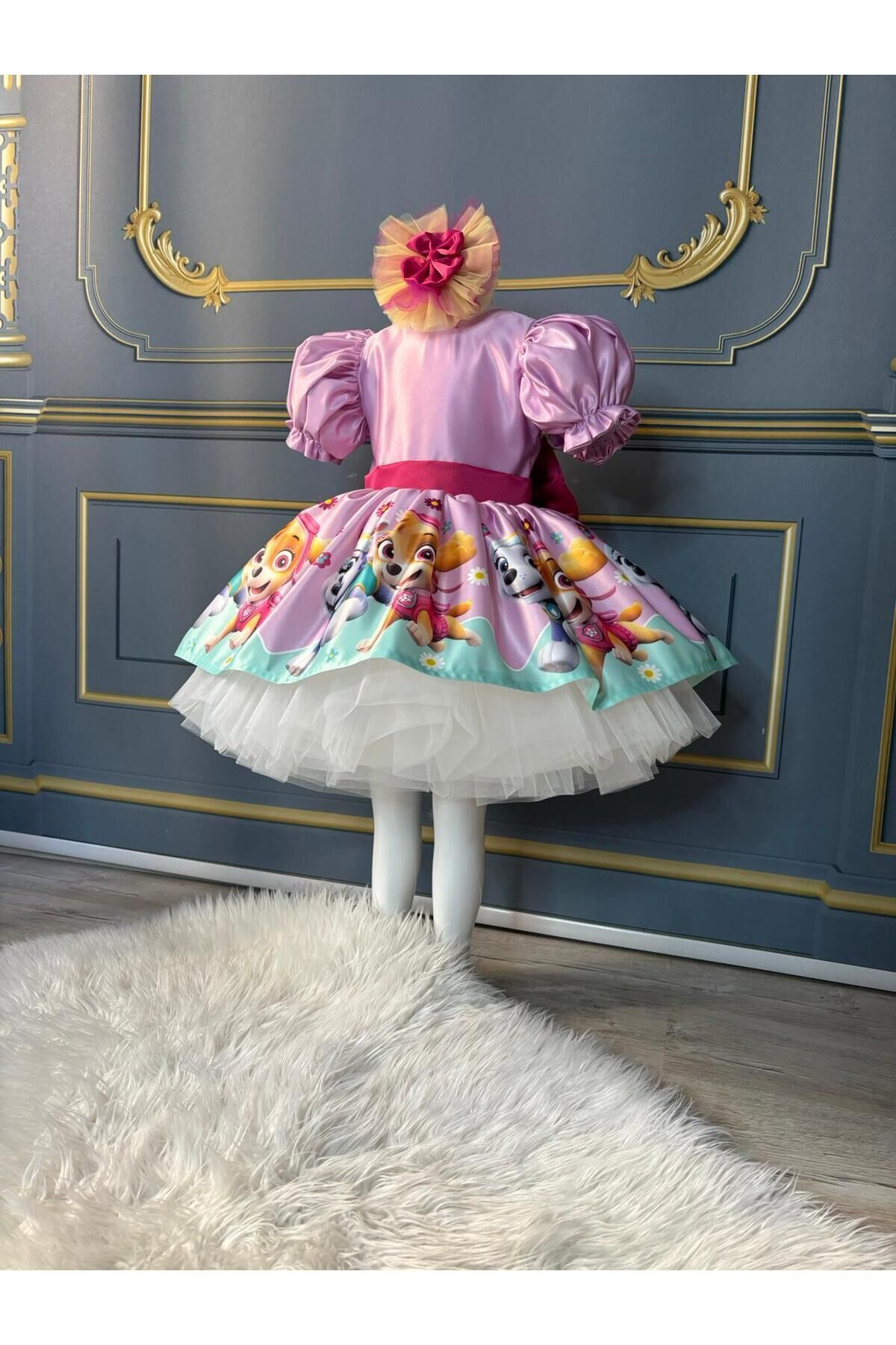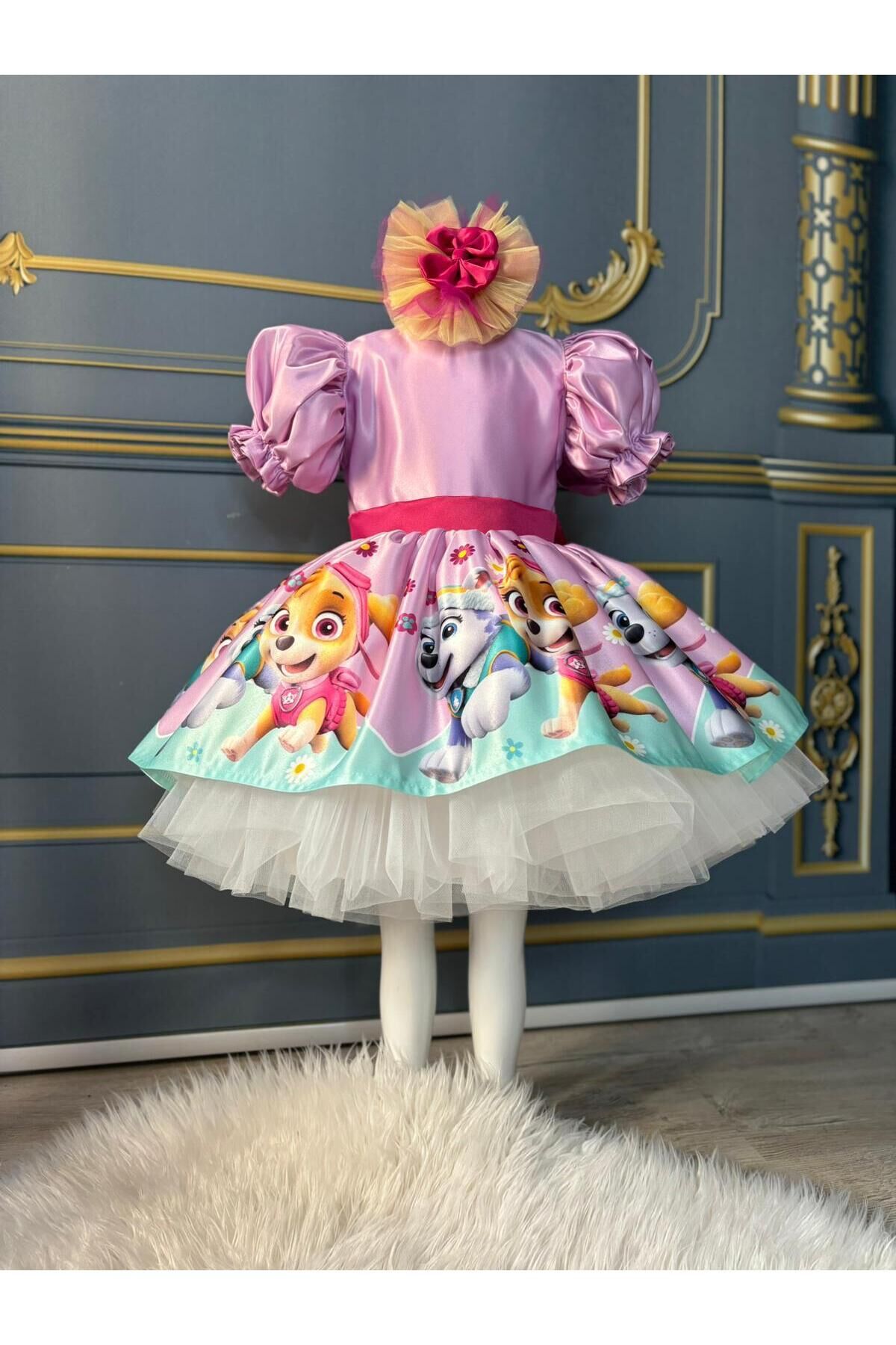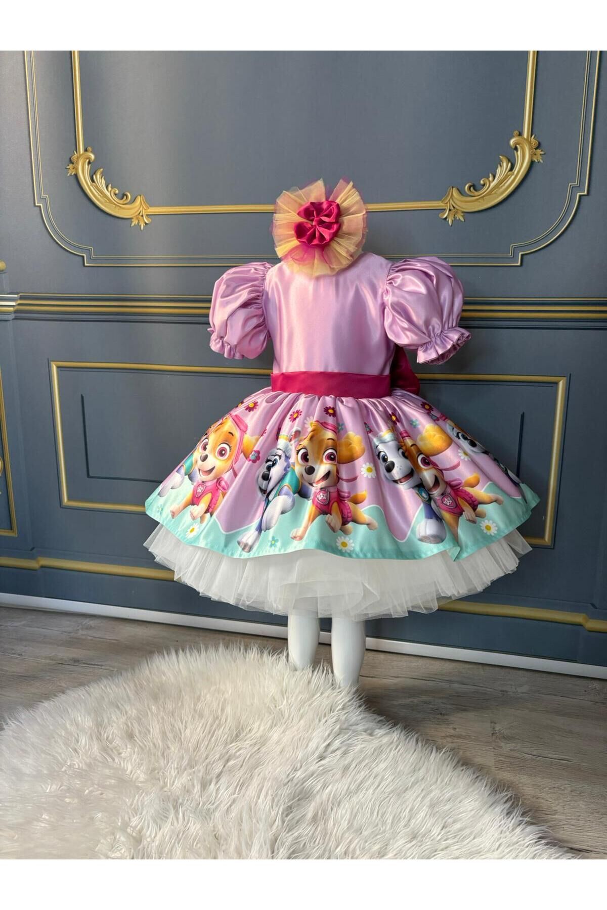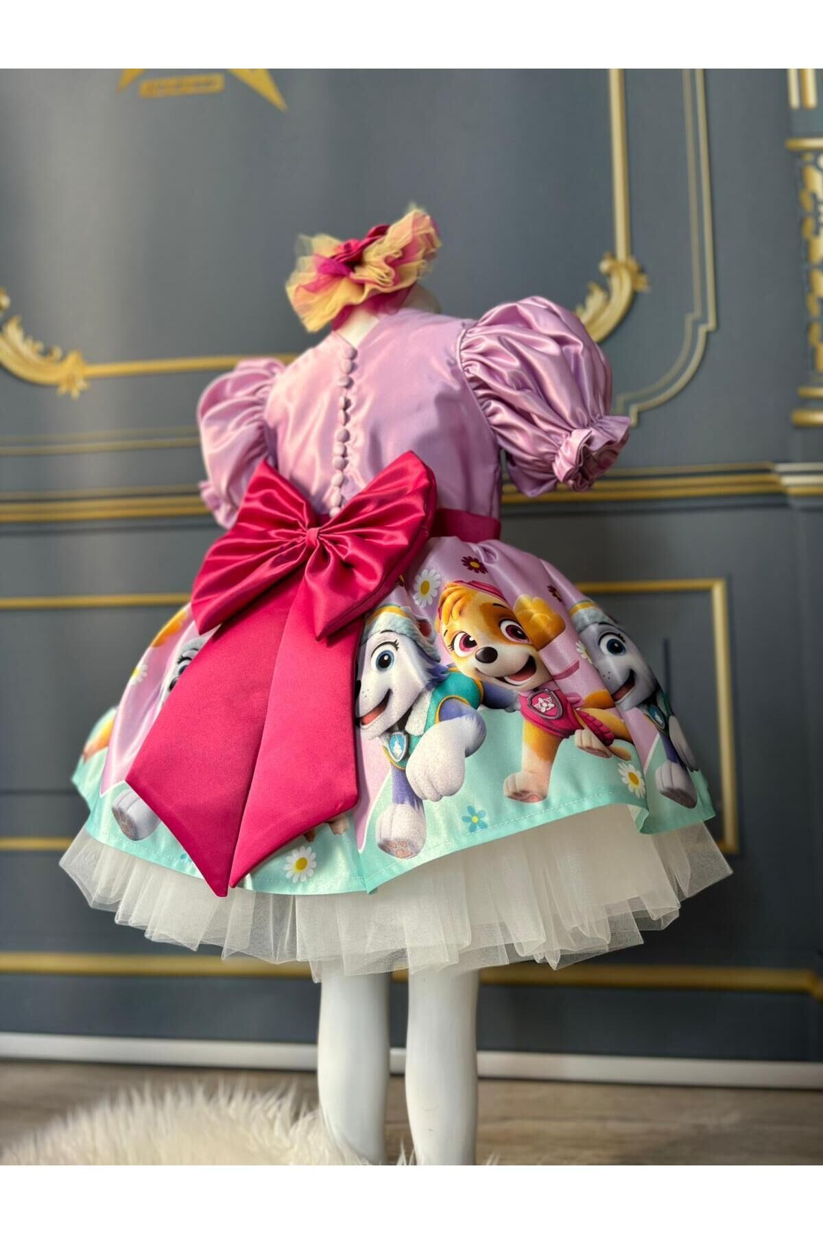 - Paw Patrol temalı tasarımıyla çocukların ilgisini çeken bu elbise, onların favorisi olacak.; - Saten kumaşı sayesinde yumuşak dokunuşu ve parlak görünümüyle göz alıcı bir stil sunar.; - Kloş kalıbı ile rahat hareket etme özgürlüğü sağlarken, balon kol detayları şıklığı artırır.; - Düğmeli kapama şekli pratik kullanım imkanı tanırken, pembe rengi enerjik ve neşeli bir hava katar.; - Kısa kol boyu yaz ayları için idealdir; sıcak günlerde serinlik hissi verir.; - Orta kalınlıkta saten dokusu, mevsim geçişlerinde de konforlu bir kullanım sunar.; - Party koleksiyonuna özel olarak tasarlanmış bu elbise, kutlamalar ve eğlenceler için mükemmel bir seçimdir.; - Astarlı yapısı sayesinde iç göstermez ve daha uzun süreli kullanım vaad eder.; - 10 yaş bedeniyle uygunluk arayan ebeveynler için idealdir; geniş beden skalasıyla her çocuğa hitap eder.; - Cepsiz tasarım basit ama modern bir görünüm sağlarken, dijital baskı teknolojisi ile canlı renklere sahip desenler yerleştirilmiştir.; - Balon kol tipi ile trendleri takip eden genç kızların beğenisine sunulmuştur.; - Yaz sezonuna uygun olarak tasarlanmıştır; hafifliğiyle dikkat çekerken aynı zamanda dayanıklılığından ödün vermez.; - Kuşak detayı bel bölgesini vurgular ve zarif bir siluet oluştururken, düğmeli tasarım kolay giyip çıkarmaya olanak tanır.; - Dijital baskı tekniği sayesinde elbisenin üzerindeki Paw Patrol logosu canlılığını korur ve uzun süre solma yapmadan kalır.; - Kutusuz ambalaj seçeneğiyle ekstra maliyetten kaçınılarak çevre dostu bir tercih yapılmıştır.; 1 yaş: göğüs:52 cm bel: 50cm boy:88-92 2 yaş: göğüs:54 cm bel: 51 cm boy:92-98 3 yaş: göğüs:56 cm bel:52 cm boy:98-104 4 yaş: göğüs:58 cm bel:54 cm boy:104-110 5 yaş: göğüs:60 cm bel:56 cm boy:110-116 6 yaş: göğüs:62 cm bel:57 cm boy:116-122 7 yaş: göğüs:64 cm bel:58 cm boy:122-128 8 yaş: göğüs:66 cm bel:59 cm boy:128-134 9 yaş: göğüs:68 cm bel:62 cm boy:134-140 10 yaş: göğüs:70 cm bel:64 cm boy:140-146 11 yaş: göğüs:74 cm bel:66 cm boy:146-152 12 yaş: göğüs:78 cm bel:72 cm boy :152-155