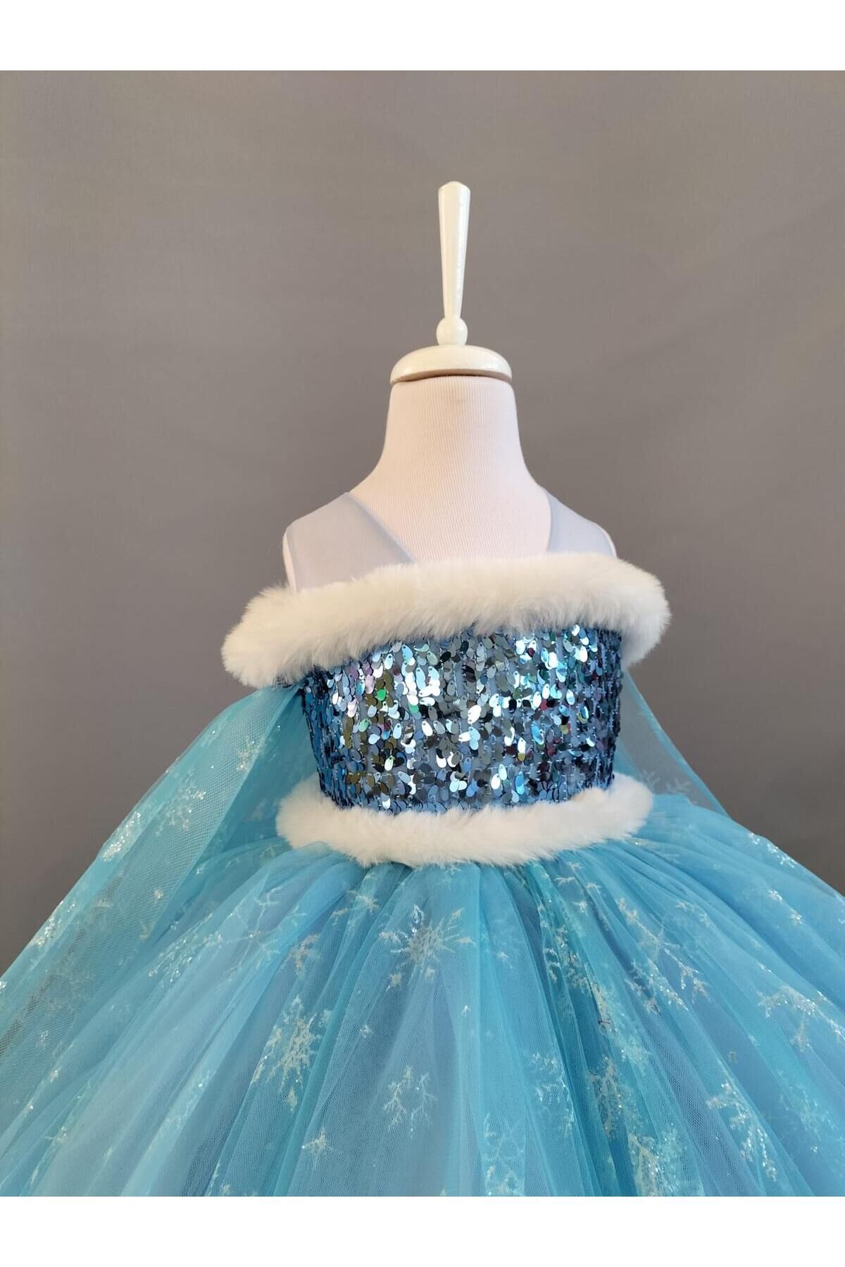 - Kız çocukları için özel olarak tasarlanmış, mavi renkteki pelerinli Elsa kostümü ile parti ve özel günlerde şıklığı yakalayın.; -kız çocuklar için ideal olan bu kostüm, uzun siluetiyle zarif bir görünüm sunar.; - Kuru temizleme önerisiyle kolayca bakım yapılabilen bu kostüm, uzun süreli kullanım için uygundur.; - Canlı mavi rengiyle dikkat çeken Elsa elbisesi, çocukların hayal gücünü harekete geçirirken aynı zamanda onlara eğlenceli anlar yaşatır.