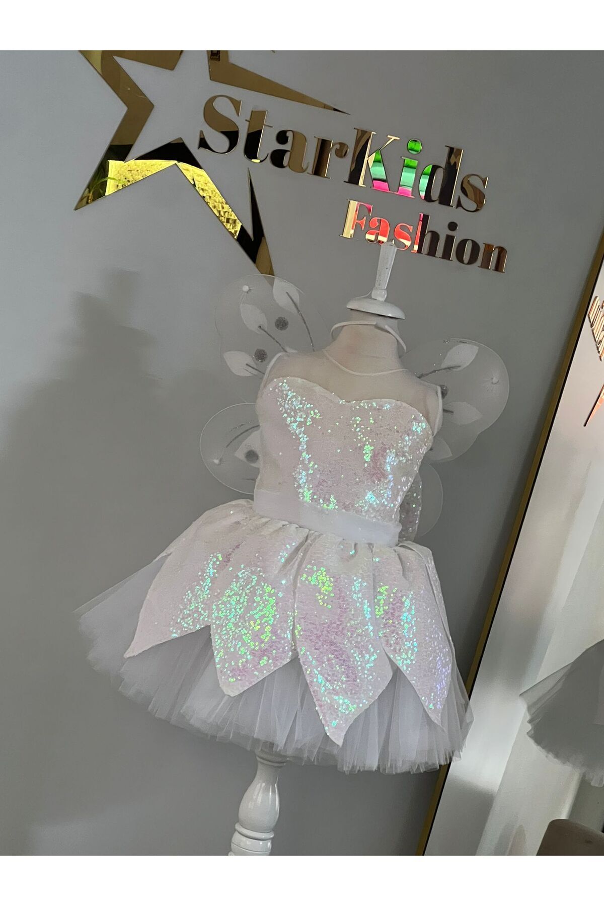 Kız Çocuk Peri Kostümü, Tinkerbell Peri Elbisesi , Özel Tasarım Payet Kumaş Kanatlar Dahil peri1beyaz Kız Çocuk Peri Kostümü, Tinkerbell Peri Elbisesi , Özel Tasarım Payet Kumaş Kanatlar Dahil