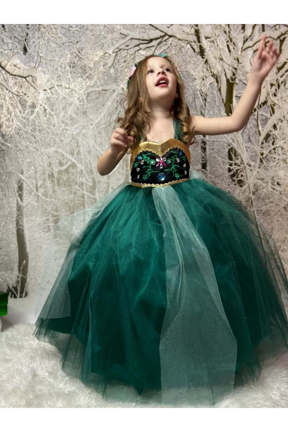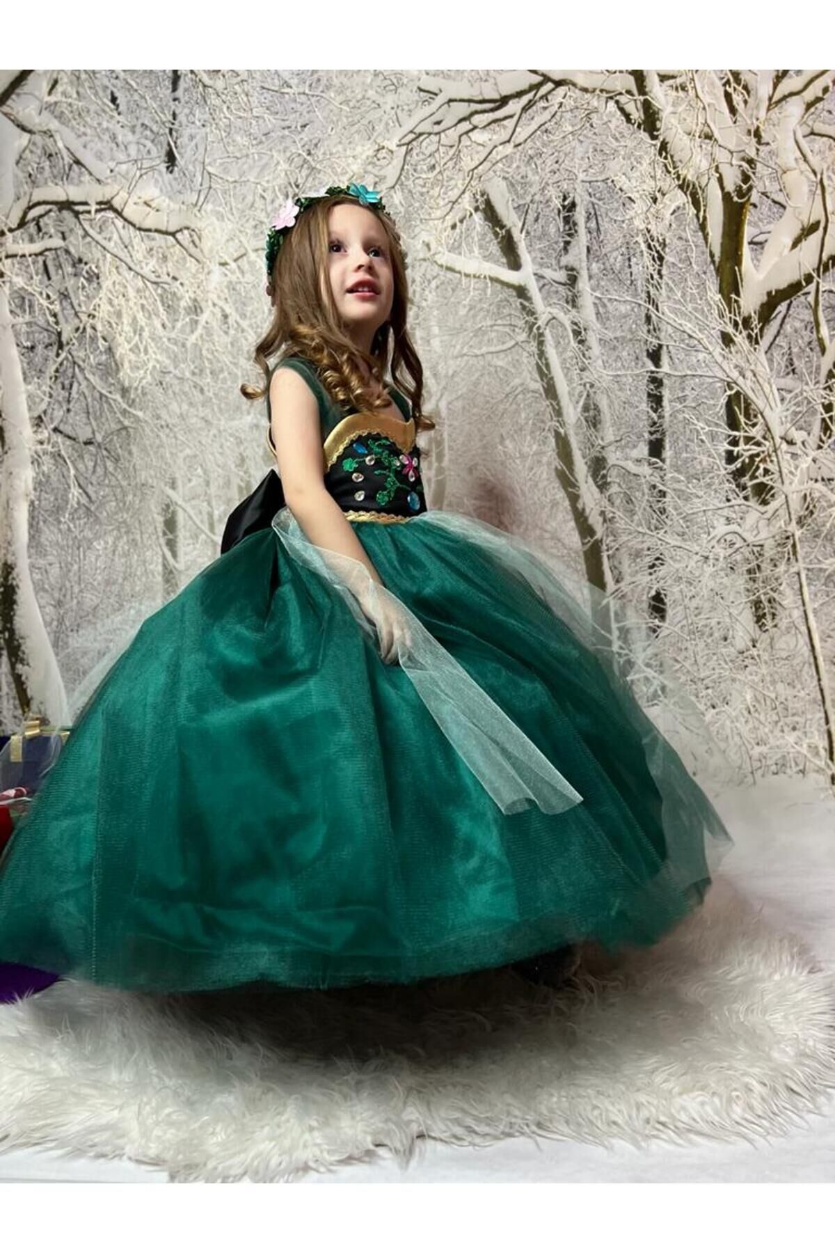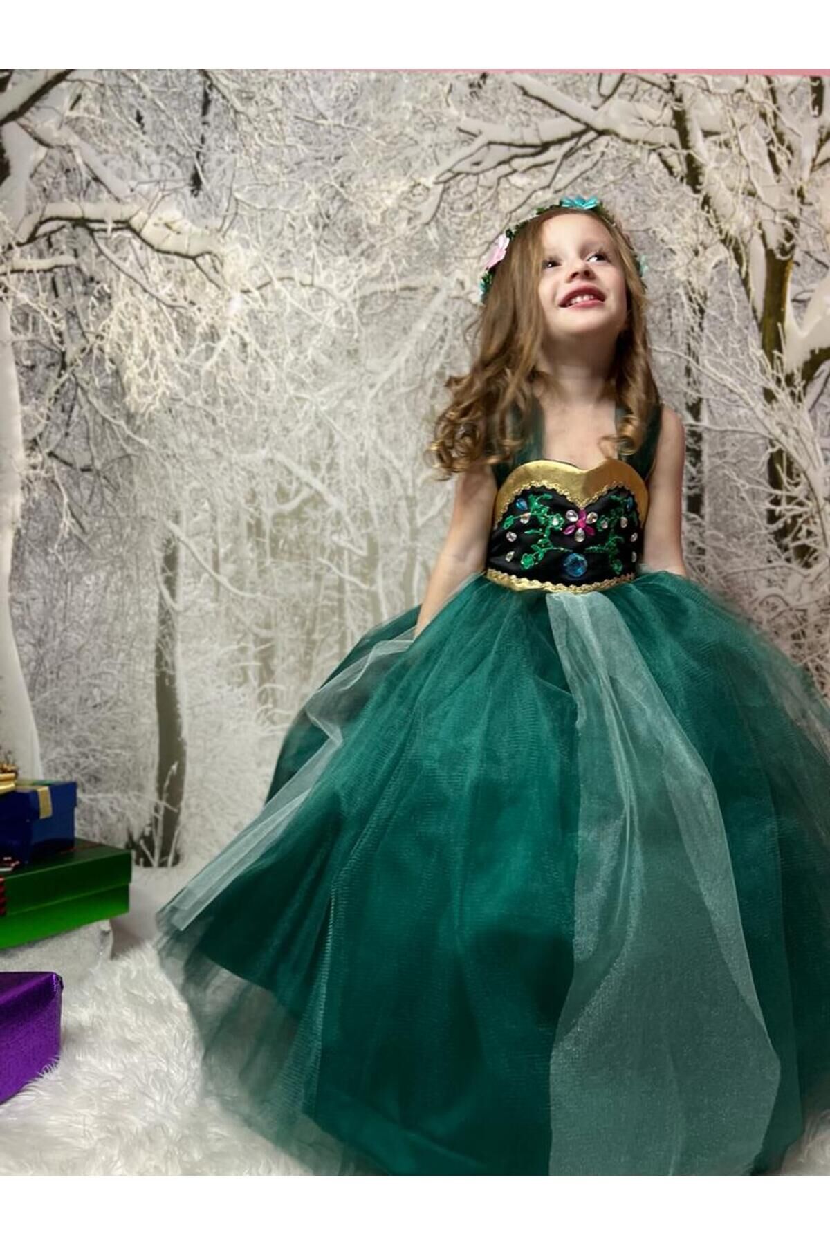 Kız Çocuk Prenses Anna Elbise, Kız Çocuk Prenses Anna Kostüm d12yesil Kız Çocuk Prenses Anna Elbise, Kız Çocuk Prenses Anna Kostüm