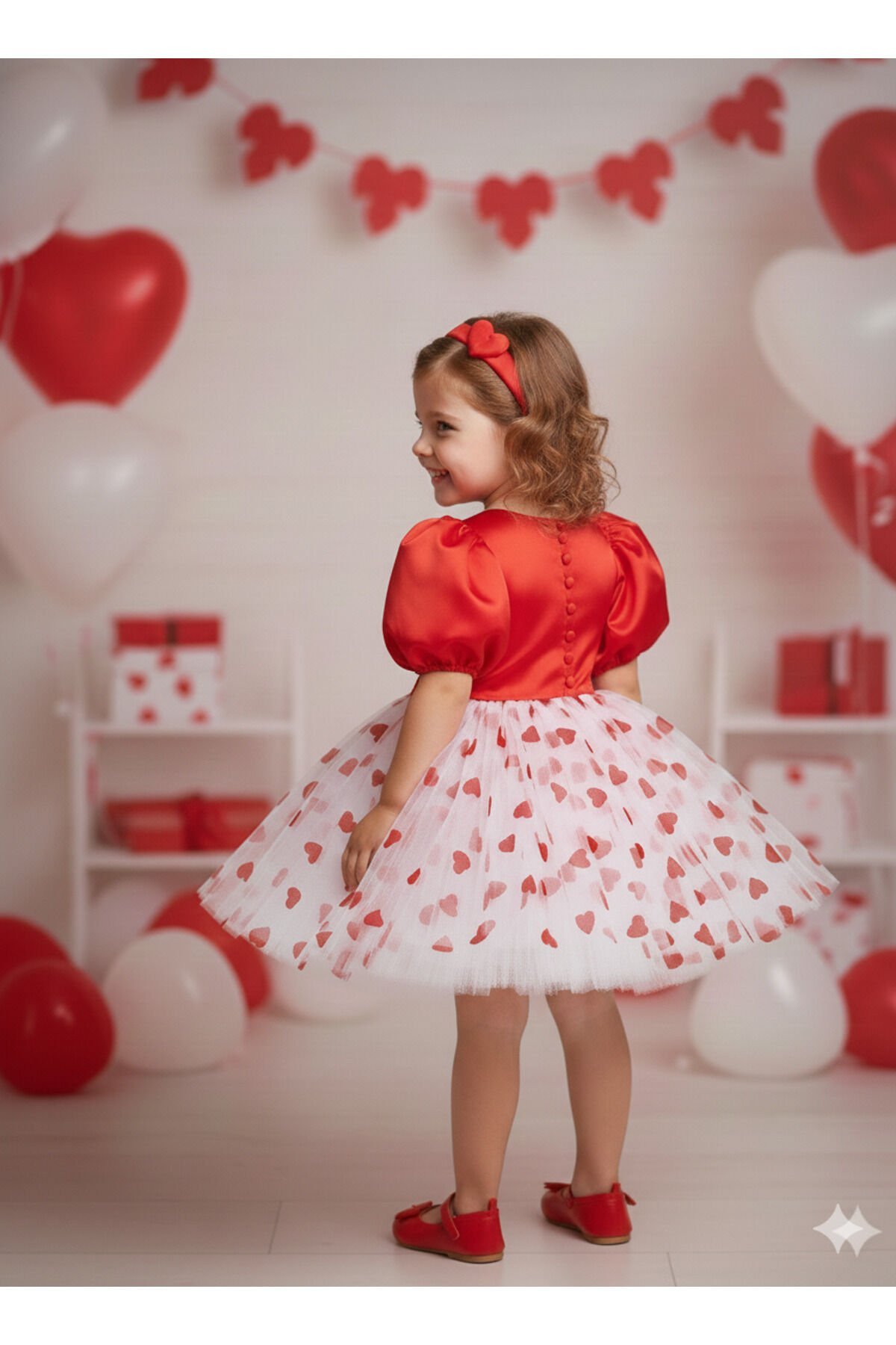 “Sevgililer Günü’ne özel tasarlanan bu zarif kız çocuk elbisesi; yumuşak dokusu, rahat kalıbı ve göz alıcı detaylarıyla minik prenseslere günün yıldızı olma fırsatı sunar.; Özel gün çekimleri, okul etkinlikleri ve parti kombinleri için ideal bir seçim.; ”