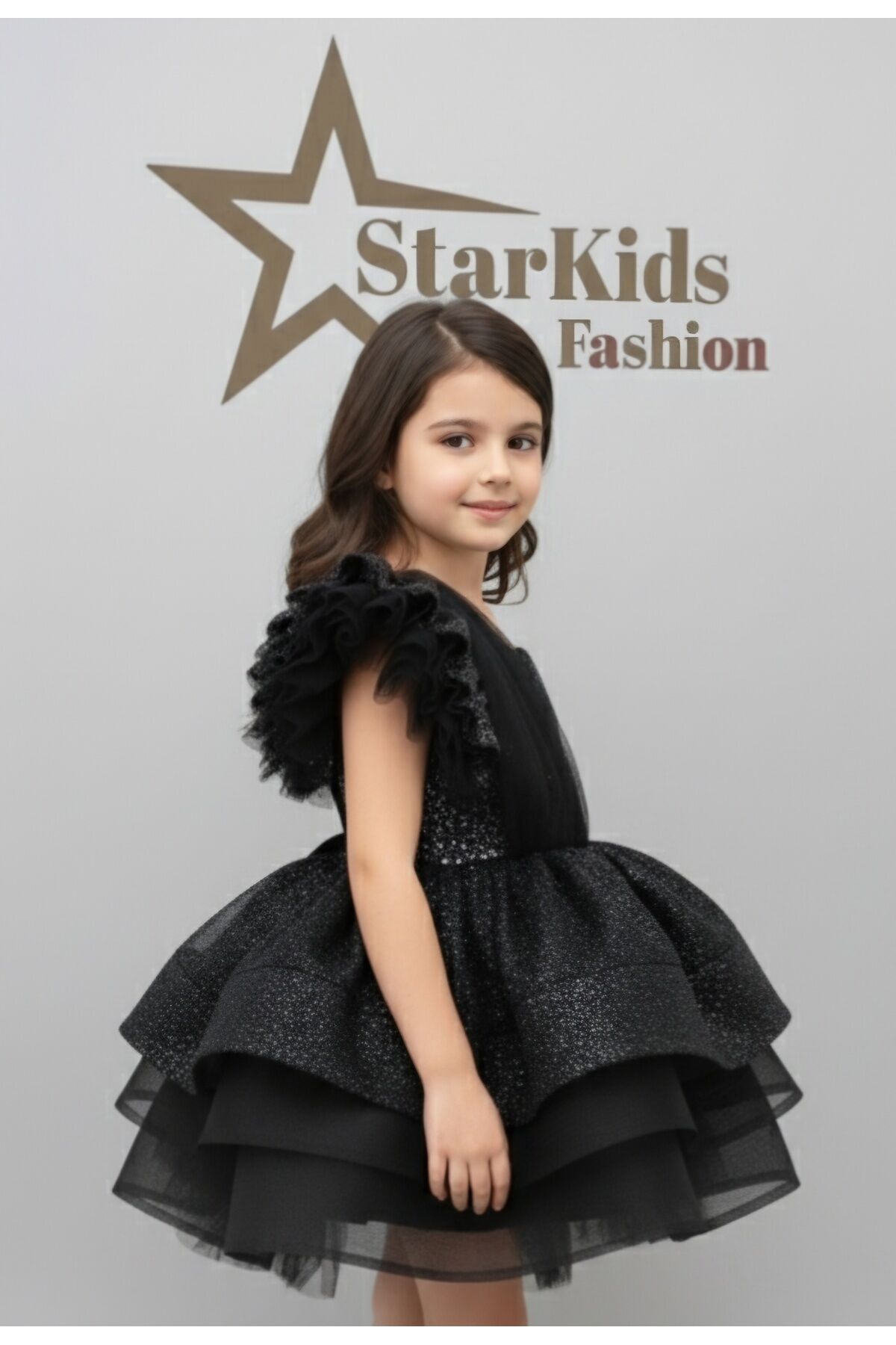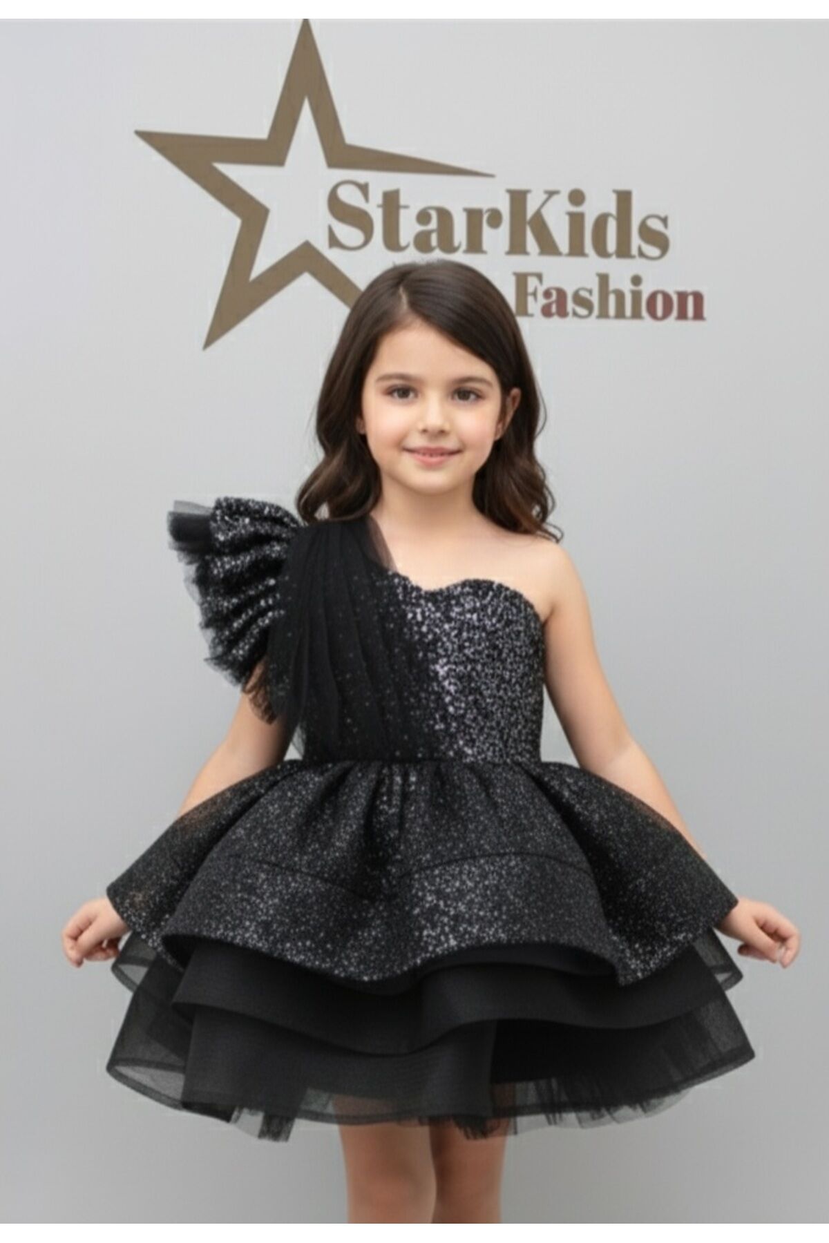Mini prensesler için özel tasarlanmış tek omuz siyah tütü elbise, zarafeti ve şıklığı bir arada sunar.; Yumuşacık tül katları ile hacimli ve kabarık duruş sağlar.; Doğum günü, fotoğraf çekimi, özel davet ve sahne gösterileri için ideal bir seçimd
