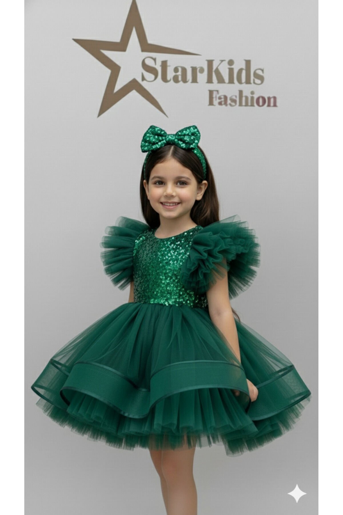 Zümrüt yeşilinin ışıltısını yansıtan kısa payetli elbise, özel gün ve davetlerde parlamak isteyen kızlar için tasarlandı.; Yumuşak astarı sayesinde rahat kullanım sağlar, hareket ettikçe ışığı yakalayan payet detayları ile şık ve göz alıcı bir duruş sunar.; Doğum günü, yılbaşı kutlamaları ve parti konseptleri için ideal.