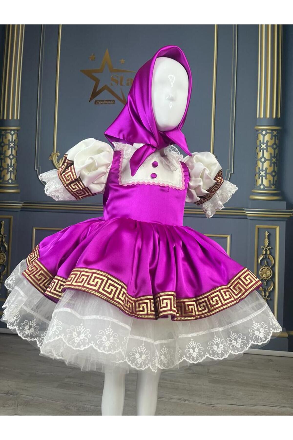 - Maşa ve Koca Ayı temalı bu kostüm, çocukların hayal dünyasını süsleyecek.; - Saten kumaştan üretilmiş olup, yumuşak dokusuyla konforlu bir kullanım sunar.; - Kısa boy tasarımı ile hareket özgürlüğü sağlar ve yaz ayları için idealdir.; - Astarlı yapısı sayesinde rahatlıkla giyilip çıkarılabilir ve şık görünüm kazandırır.; - Mor renk seçeneğiyle dikkat çekici ve canlı bir stil oluşturur.; - Asimetrik yaka detayı ile modern bir hava katarken, cepsiz tasarım pratiklik sunar.; - 2 yaş bedeni, küçük prenseslerin vücut hatlarına uyum sağlayacak şekilde tasarlanmıştır.; - Düğmeli kapama şekli kolay giyip çıkarmayı mümkün kılar; kısa kol tipi ise serin günlerde idealdir.; - Kutusuz olarak sunulan bu ürün, ekstra koruma gerektirmeyen basit bir ambalajda gelir.; - Yaz sezonuna özel parti koleksiyonundaki bu elbise, eğlenceli etkinliklerde favoriniz olacak.; - Web color mor rengiyle her zaman moda olan tonları yansıtırken, cinsiyeti belirtmeden herkes tarafından tercih edilebilir.; - Saten materyali sayesinde zarif bir parlaklık kazanan bu elbise, dayanıklılığıyla uzun süreli kullanım vaat eder.; - Type 1 yıkama talimatına uygun şekilde bakımı yapıldığında formunu koruyarak ilk günkü gibi kalacaktır.; - Party ortamları için mükemmel seçim olan bu düz desenli elbise, sadelikten yana olanların beğenisini toplar.